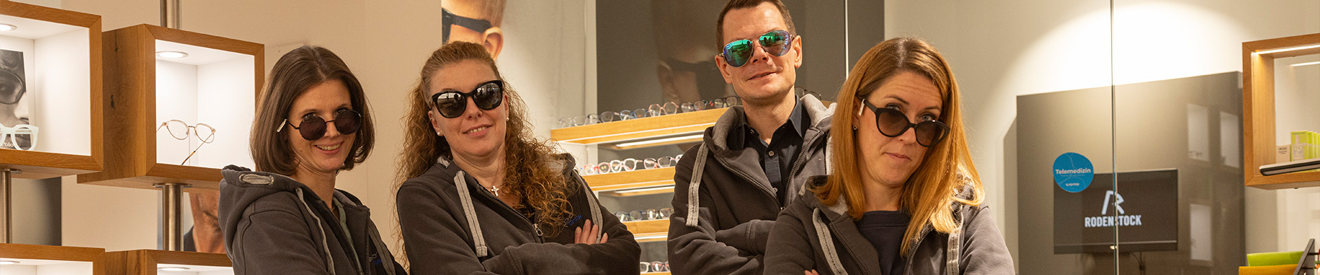 Zusammen mit Sascha Bachmann arbeitet ein 4-köpfiges Team aus Optikermeisterinnen und Optikerinnen an dem Anspruch jeder Kundin und jedem Kunden, die perfekte Sicht und den perfekten Look zu ermöglichen.